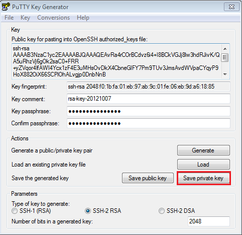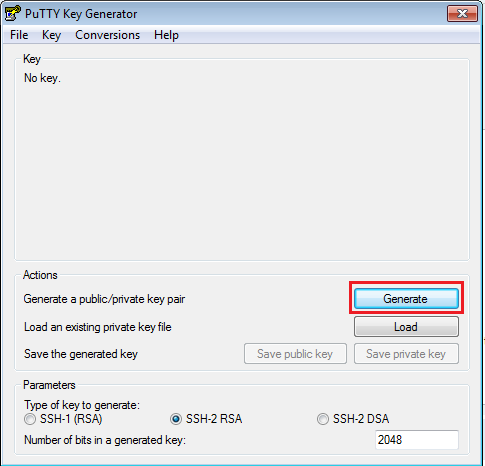 Sous windows il faut télécharger et installer un petit outil appelé putty key generator qui va nous permettre de générer une clé privée et une clé publique.