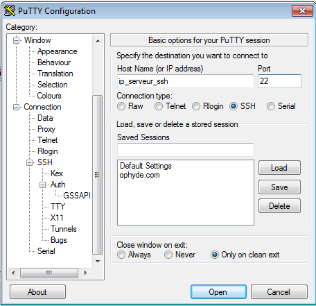 On configure maintenant putty pour se connecter à notre serveur avec notre clé privé